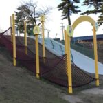すべり台の隣にはこんな感じの、ロープで上ったり下りたりすることができるアスレチック風の遊具もありました。